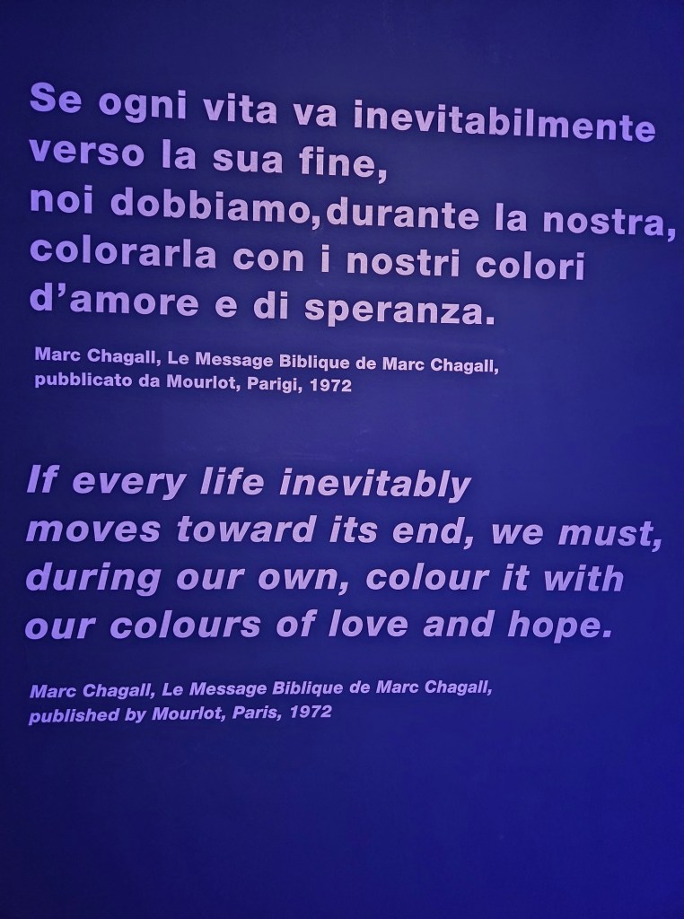 Ferrara is a very old city with an interesting history involving the Dukes of Este and the Papal governance after the duchy failed to produce an heir. We had great food and an insightful private walking tour. We walked the entire ancient perimeter wall (mostly intact) of about 6 miles, and saw an amazing Chagall exhibit that happened to be in town. We filled in with myriad day trips by train: Padova, Ravenna, Florence, Bologna, none of which had we visited in many years. Truly enjoyed seeing them again. Those mosaics in Ravenna! The Scrovegni Chapel in Padova! Florence was not as crazy with people as we feared it would be and we found a delightful trattoria where it seemed mostly locals were lunching. Venice still screams at me to come back and spend a few more nights. Click on any picture for a better view (unimpeded by captions).