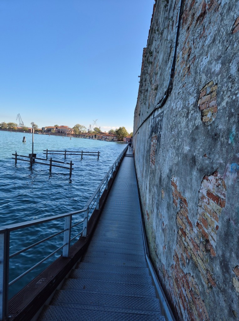 The challenge was to find something unique away from the crowds at San Marco and Rialto. Thanks to the 2025 Architecture Biennale, I found a walking tour that took us to places we did not know you could access, in particular, the Arsenale, which used to be off-limits except for The Biennale exhibits held in the Arsenale South. Now the northern section is open on a limited basis and the route to get there is astounding.