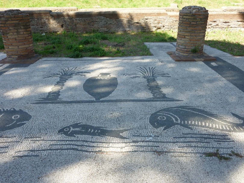 Ostia Antica. In the “Piazzale delle Corporazioni” or Square of the Guilds. Mosaics depict services and products.