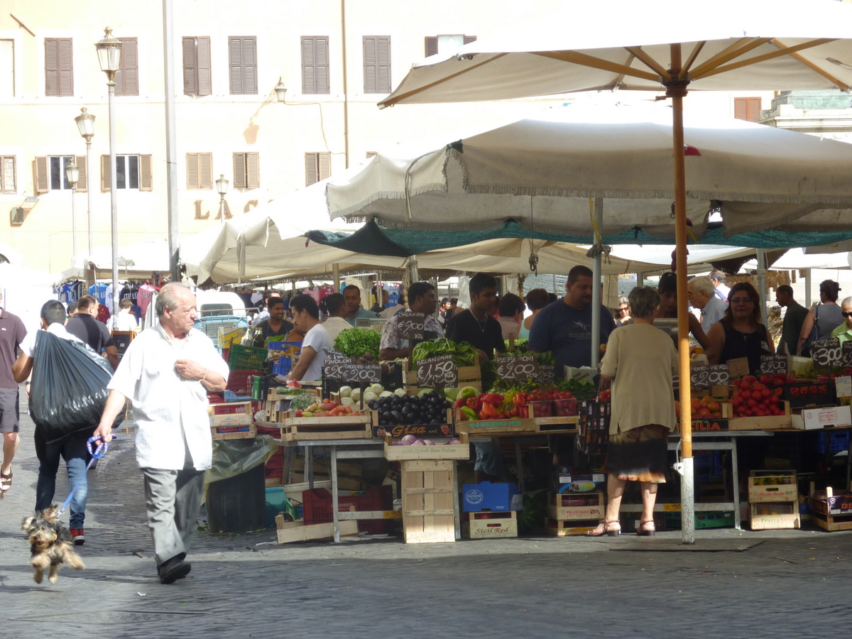 Saturday we always go to Campo dei Fiori, a busy busy market almost any day of the week. We love the bustle and hustle, and access to the best salumi in all of Rome: Antica Norcineria Viola. Unfortunately now closed for ferie, so we have to make do with our stockpile until he returns in September.