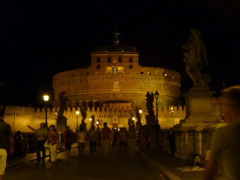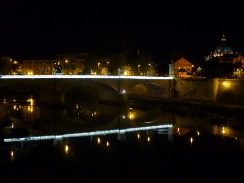 It really was a gorgeous night. The river was still and Rome glowed like it was lit by torches. That’s St. Peter’s Basilica on the right in the picture.