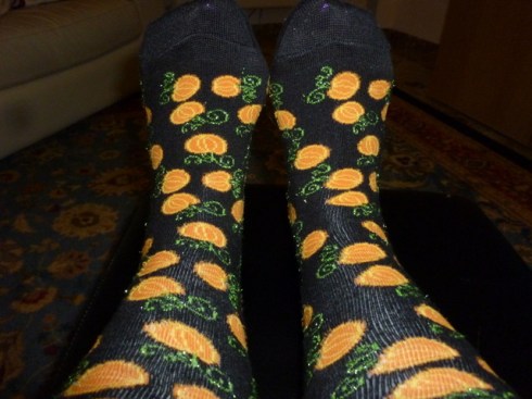 Happy Halloween! The mummy bandages from last week have been replaced by my Halloween pumpkin socks.