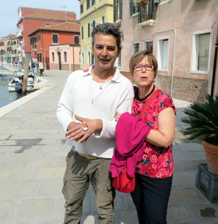 Maestro Giorgio Bruno with me outside his studio on Murano. We visit him every trip. I encourage you to drop by, too. Cross the green bridge and turn left away from the majority of shops.