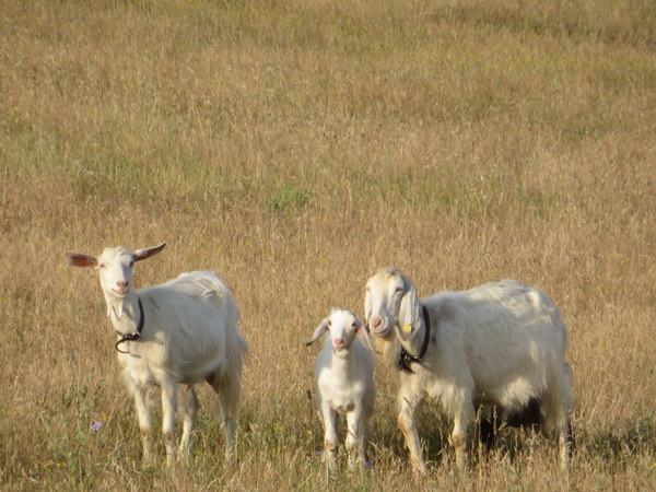 Goat family eyes us warily as we hike along their country road.