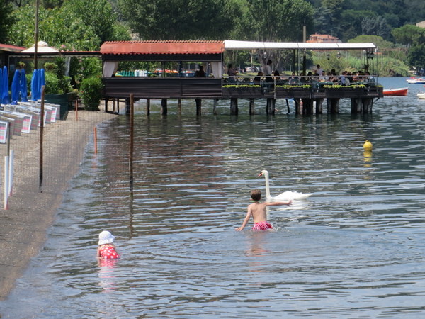 William is not really chasing the swan…. It was clearly not afraid of him, though.