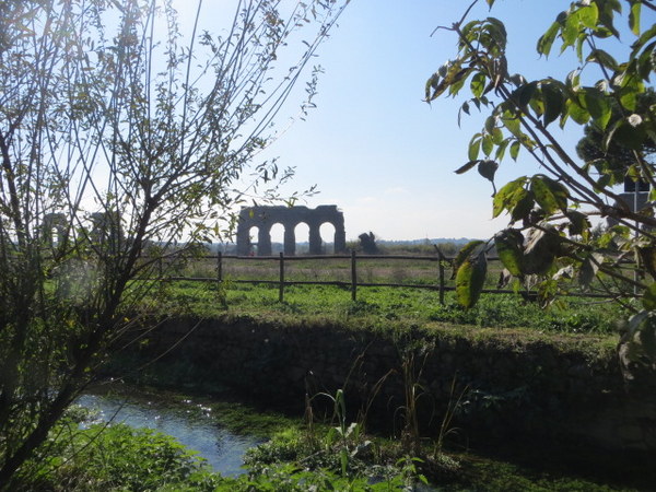 From afar, disconnected arches of an ancient aqueduct. Closer, an even older, now-buried aqueduct, appears as a stream.
