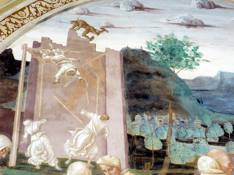 Rather violent details in a fresco, showing some of the feats of St. Benedict.