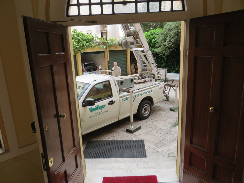 Lift truck in our courtyard.