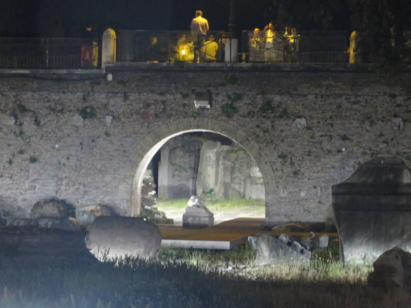 Last night Ric, Derek and I went on the audio-guided walking tour of Caesar’s Forum and we were impressed. This is the first time visitors have been allowed. It is carefully managed to avoid damage (one is kept on a walkway) but you are right there, in the Forum built over 2000 years ago. Modern Roma seems far away. The multi-media presentation, available in 8 languages, was extremely well done and helped one to understand the layout and function of the forum. It’s wonderful to have an evening activity like this, making use of the lovely evening hours after the heat of day has passed. The shows/tours run every 20 minutes starting at 21:00 and until midnight. Each tour is about 45 minutes in duration.