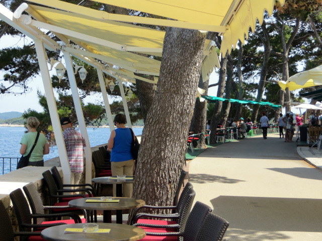 Along the seawall in Korčula one finds well-located tables morning, noon and night.