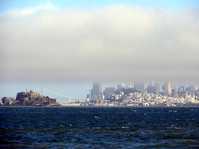 Fog over the S.F. bay on our early morning trip to Sausalito.