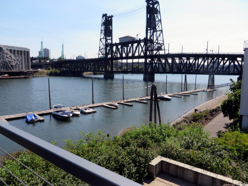 Our temporary home, an urban apartment on the Willamette River. The Steel Bridge is incredibly busy.