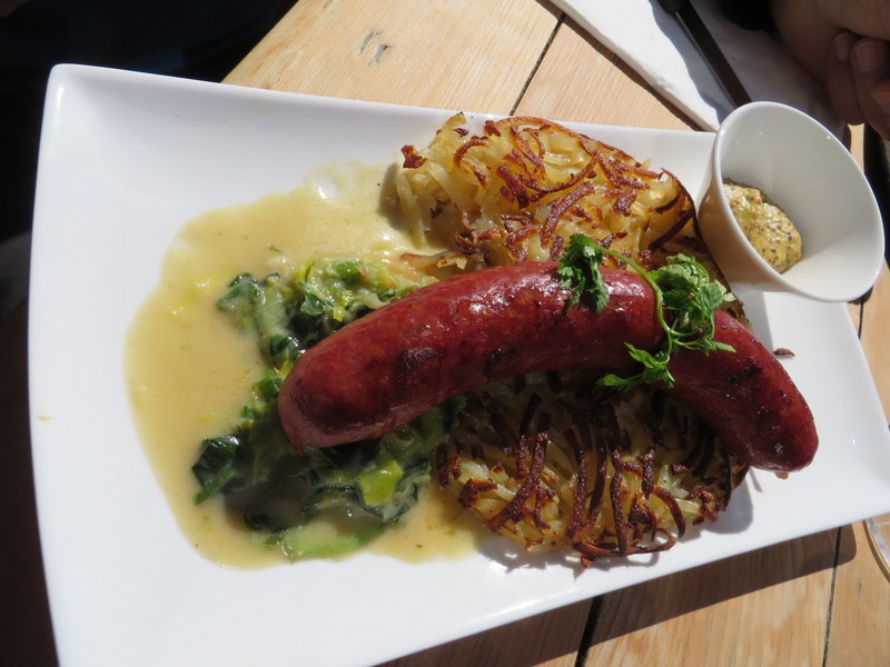 Ric’s choice: local sausage with creamed leeks and roesti.