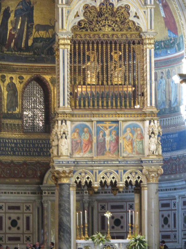 The baldacchino over the alter. See the little statues in the upper cage? Those are silver, and are of St. Peter and St. Paul, which contain pieces of their heads.