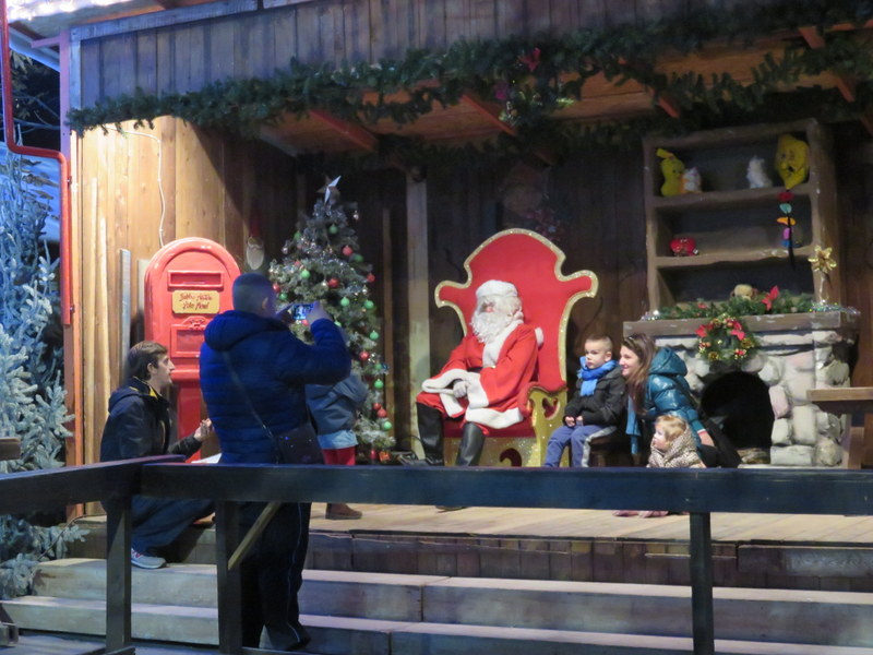 Babbo Natale receives kids in a very low-key style in Milano Christmas Village. Note the parents taking their own photos!