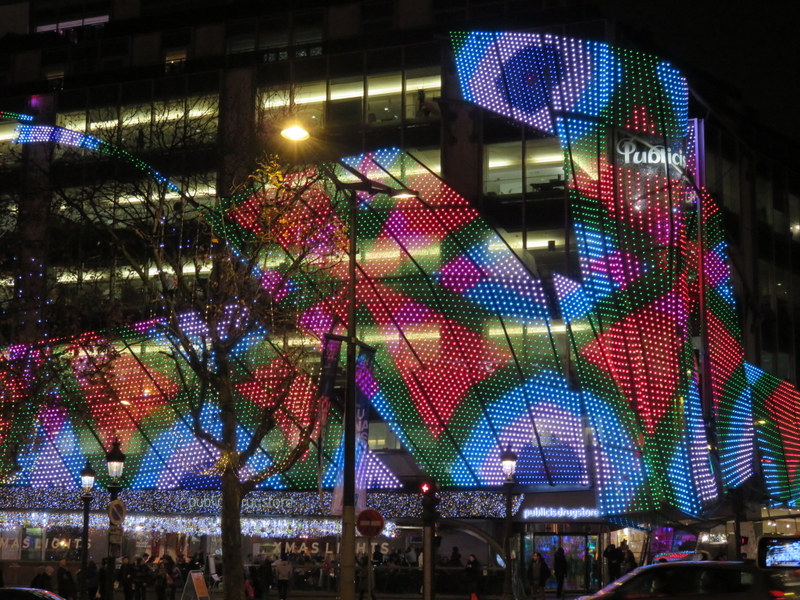 Publicis drugstore at Étoile, Champs-Élysées. Constantly changing display.