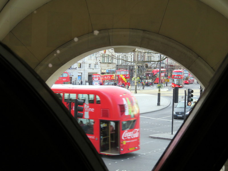 We could not believe how many buses careen around London! Never had to wait for more than a few minutes. This view from a cafe above Trafalgar Sq.