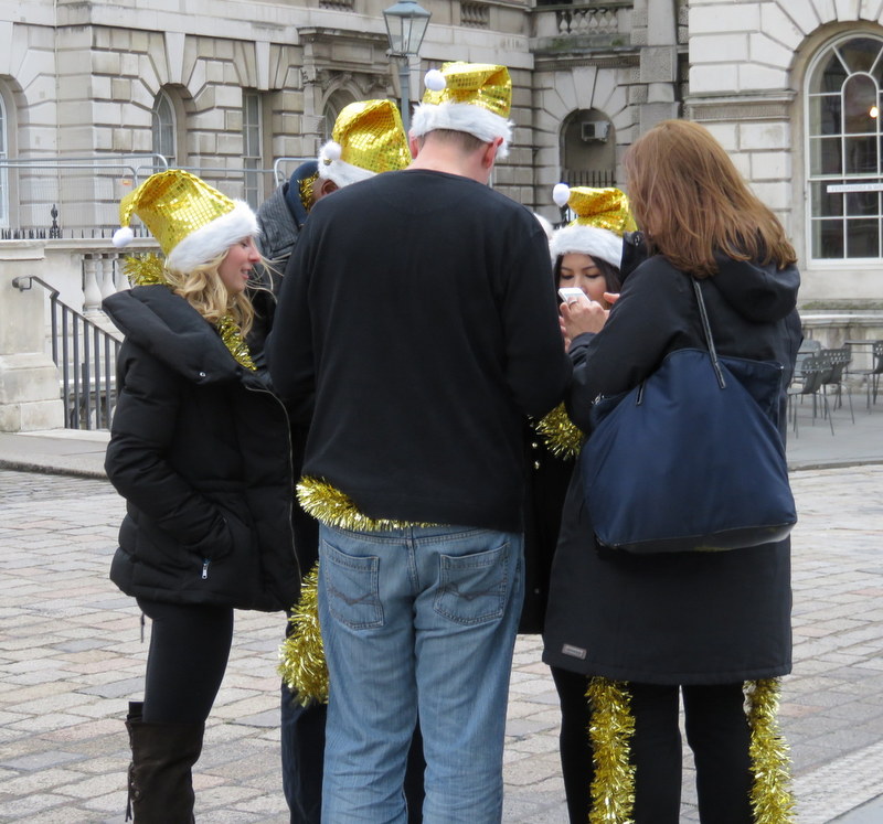 Londoners donned their festive accoutrements for a day out, Dec. 24.