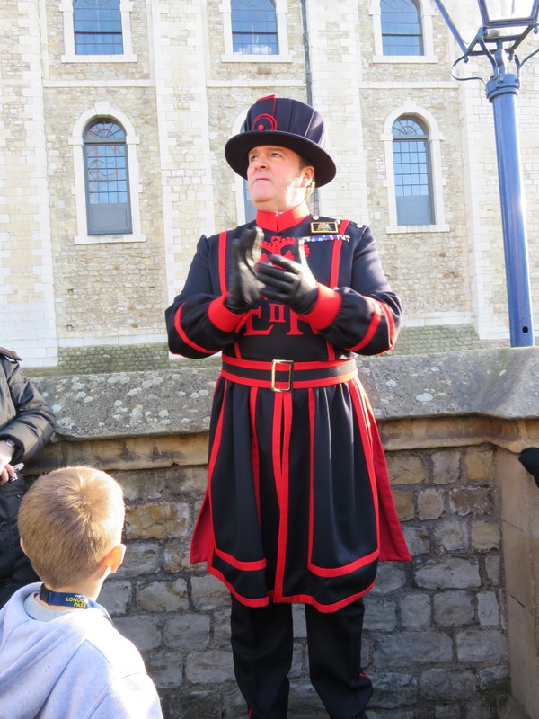 Our fun Yeoman Warder tour guide at the Tower of London.