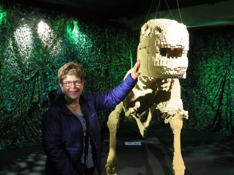 Laurel and friend. The dinosaur took over 80,000 bricks.