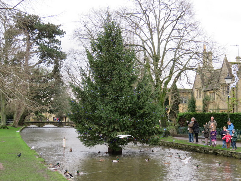 I love the Christmas tree in the middle of the stream, Bourton-on-the-Water.