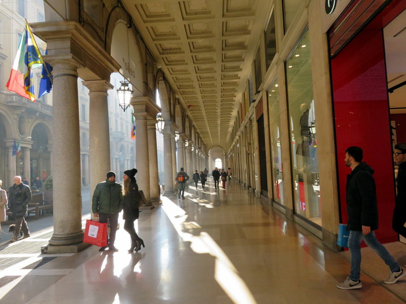 A typical porticoed street makes for nice shopping, protection from heat or rain.