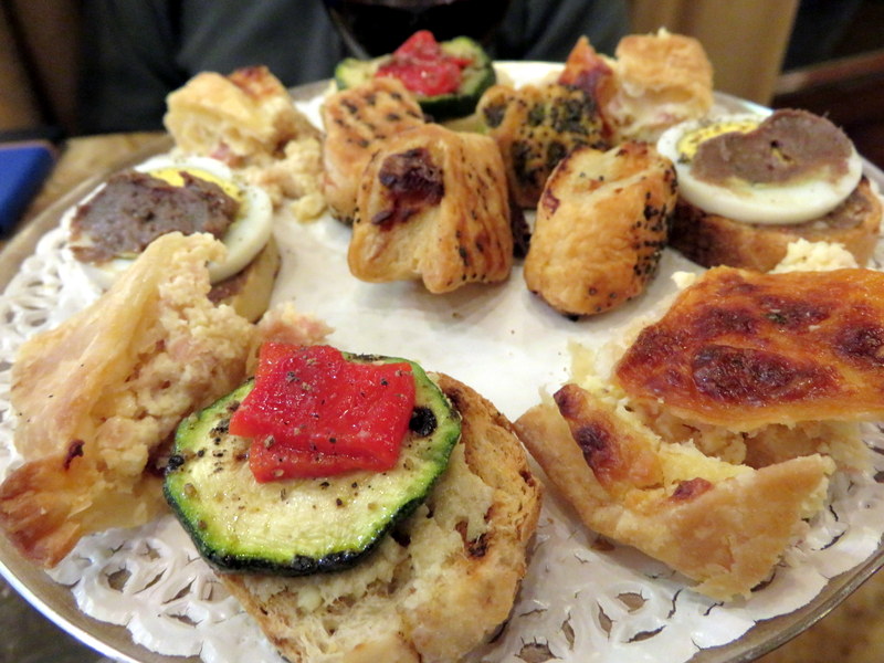 Apericena is a thing in Torino as well as Milano. Buy a glass of good wine for €7.00 and you get a plate of savories at Mulassano. Stop a few places and you’ve had cena, Italian for dinner.