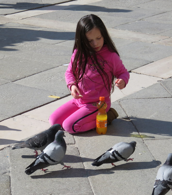 The pigeons were keeping this little girl occupied.
