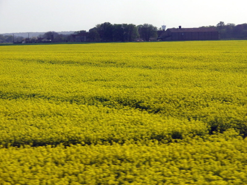 Rapeseed, planted on hundreds of acres across France, blooms beautifully in April. Sorry about the blurring. Taken from the train, you know.