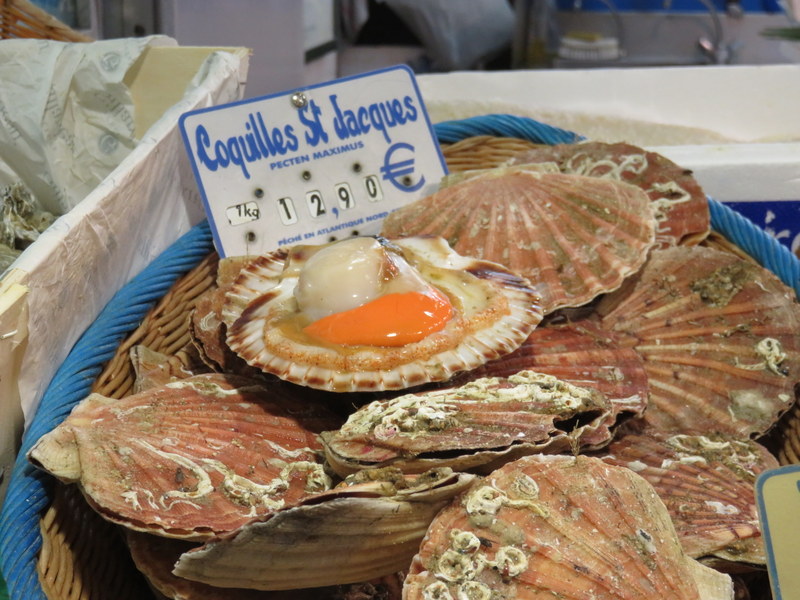 Scallop with roe (or coral) included. I had no idea they were sold this way, but leave it to the French to use every edible part. The roe is supposed to be delicious!