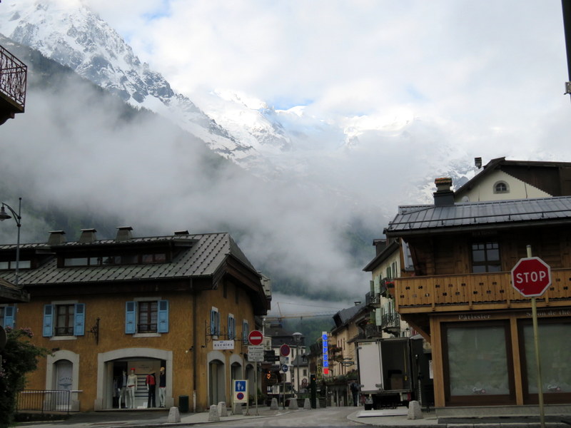 Chamonix, a charming village, but this is about as much of Mont Blanc as we got to see.