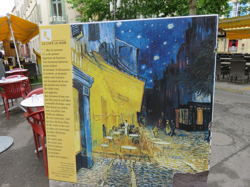 In Arles we followed the Vincent Van Gogh trail, where copies of his paintings are placed in the location he painted.