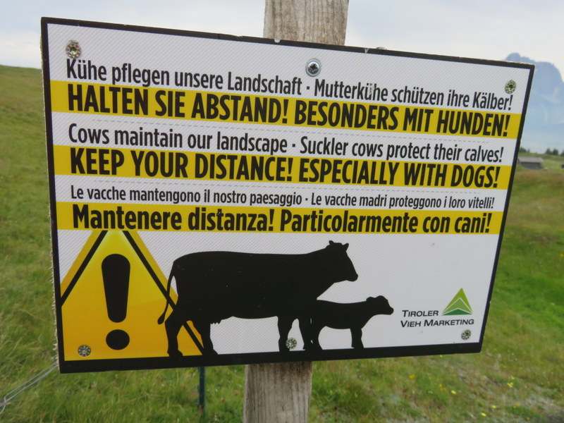 Warning about maternal cows. Not too sure about the choice of English as “suckler cows.”