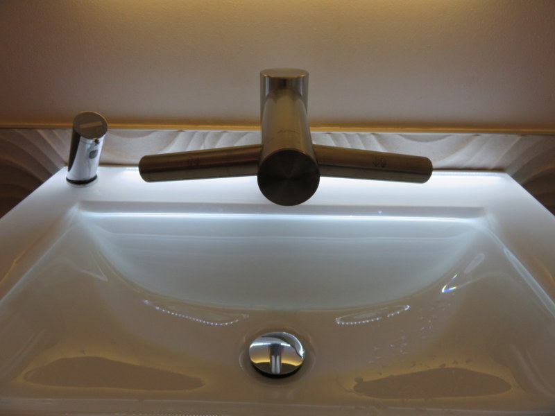 Here is a close up of the sink. The “wings” on the faucet are actually Dyson dryers.