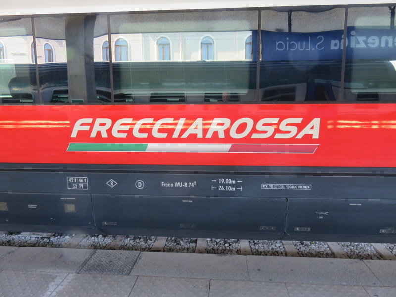 The train we take most often, Italy’s Frecciarossa (Red Arrow).