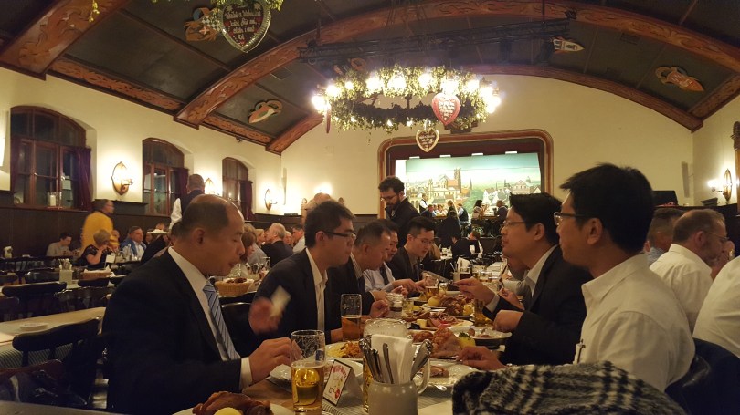 These Japanese were not enjoying the beer hall cuisine, preferring to drink beer and let the pork knuckles and dumplings sit.