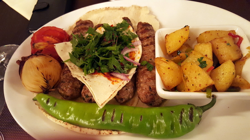 One part of our delightful Lebanese meal at Baalbek. This is kafta served like we’ve never seen it before with potatoes on the side. But then this is Germany.