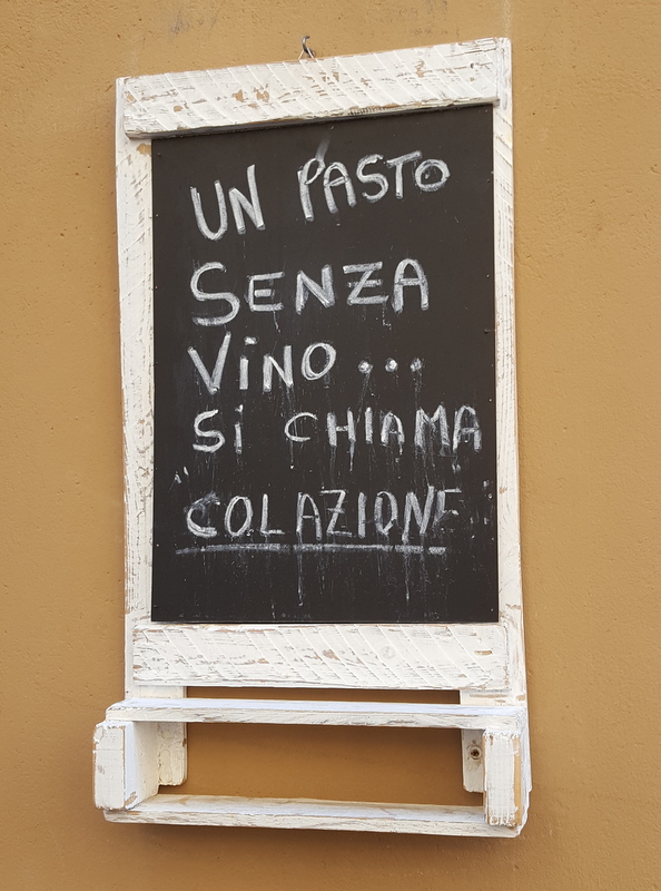 Spotted in early morning in Assisi: “A meal without wine…is called breakfast.”