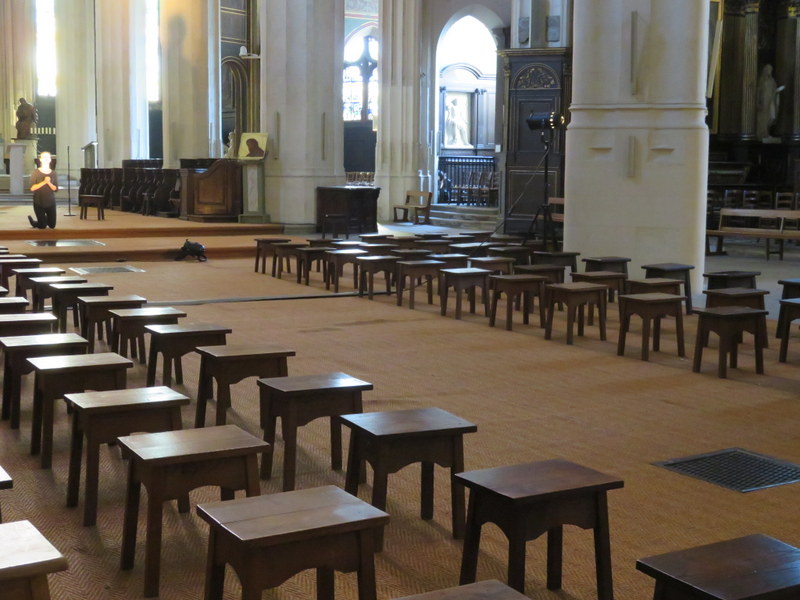 Church of Saint-Gervais-et-Saint-Protais. We’ve not seen seating like this anywhere. Reminds me of an early-American school.