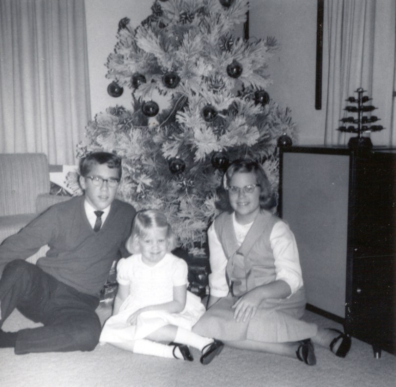 Classic family picture, probably for the Christmas card, in 1964. Brother Rick, sister Nancy, and me.