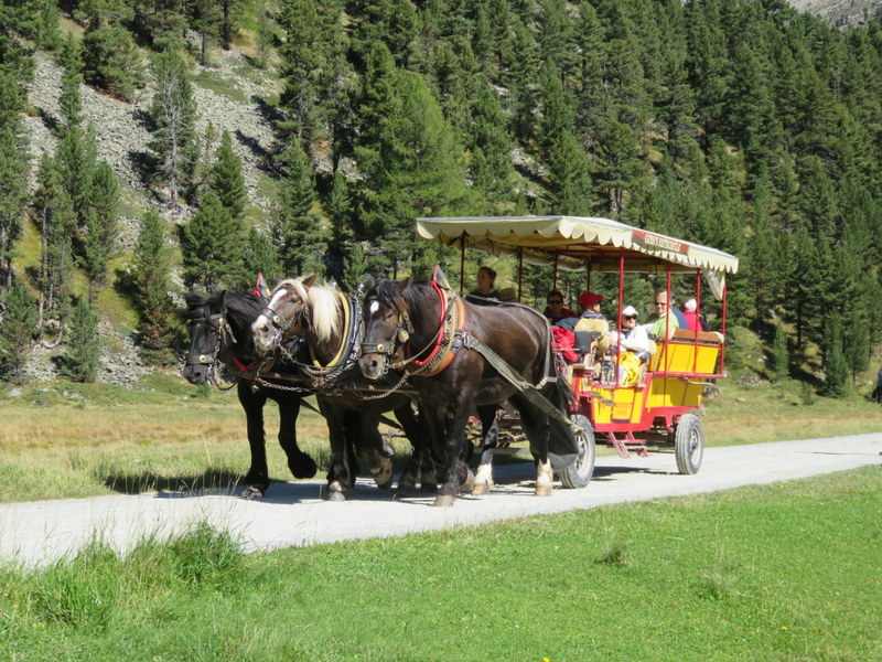 The horse drawn omnibus is an easy-hiker solution. Take the carriage up and walk 4 miles back.