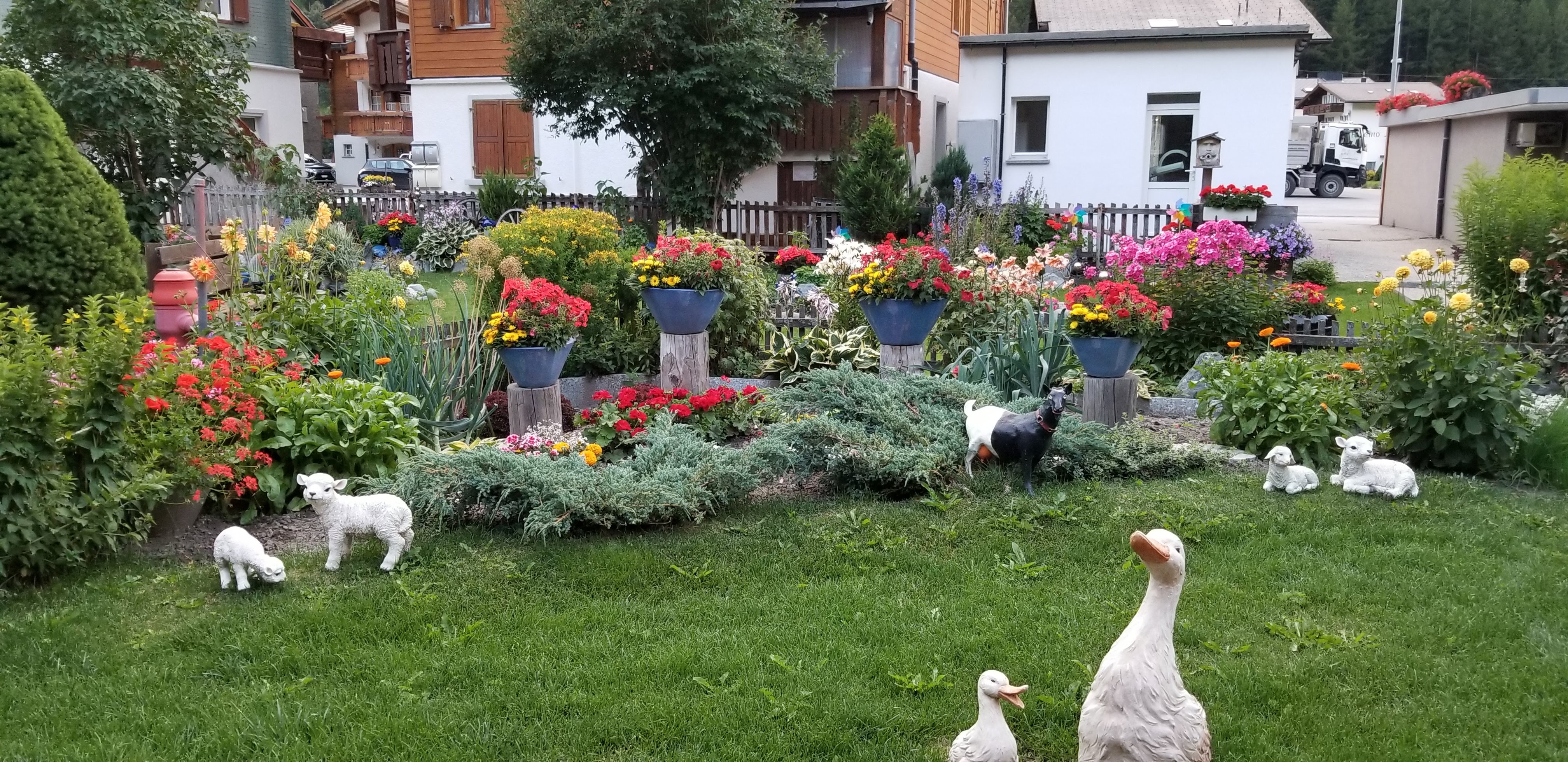 Whimsy in the garden. The Swiss are avid gardeners and each property is tidy and colorful.