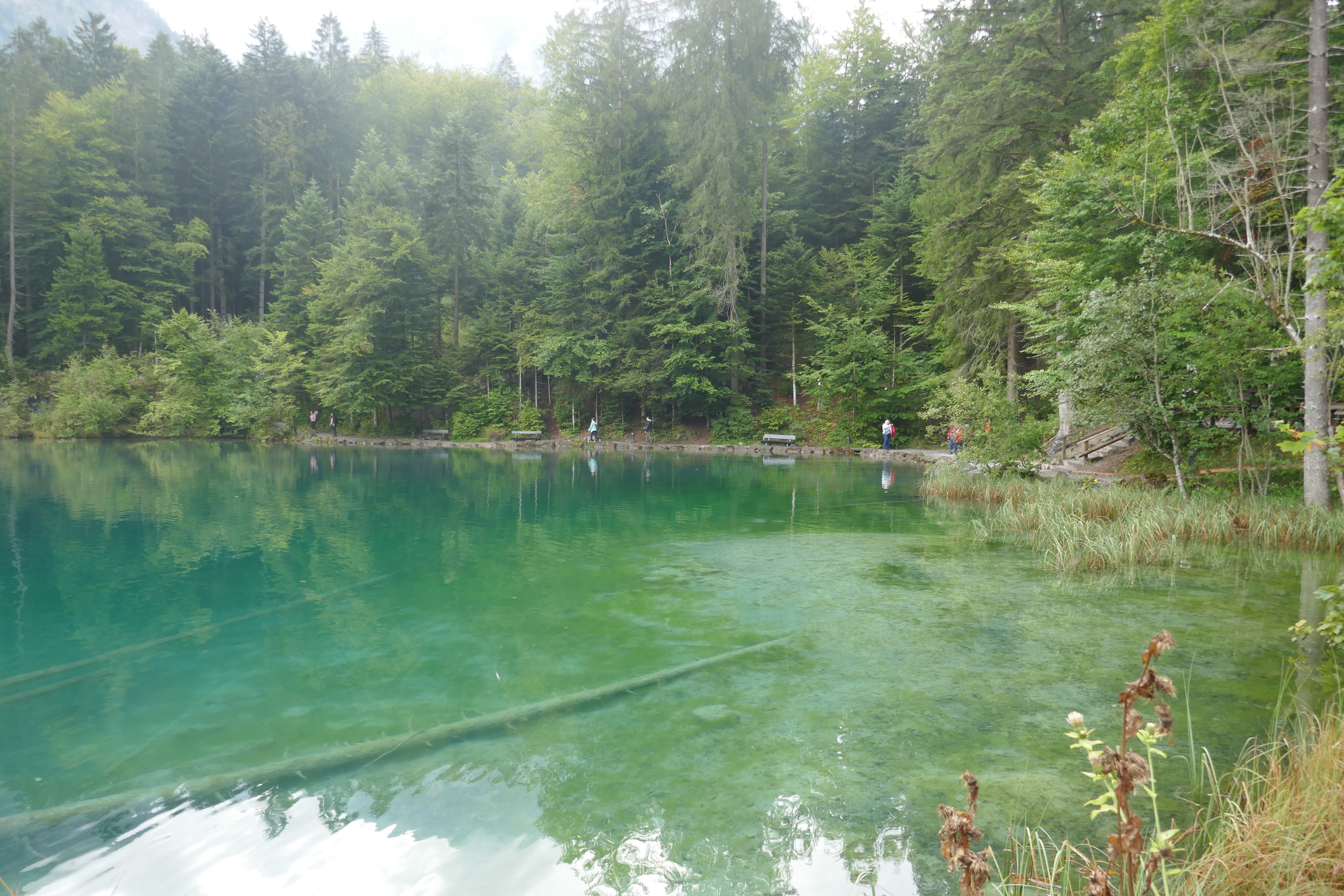 Below, a few scenes from our Lötschberger Nordrampe hike to the Blausee. It was overcast and rained the minute we arrived at the Blausee and were safely undercover drinking coffee. The Blausee is so clear you can see tree trunks submerged in 12 meters of water.