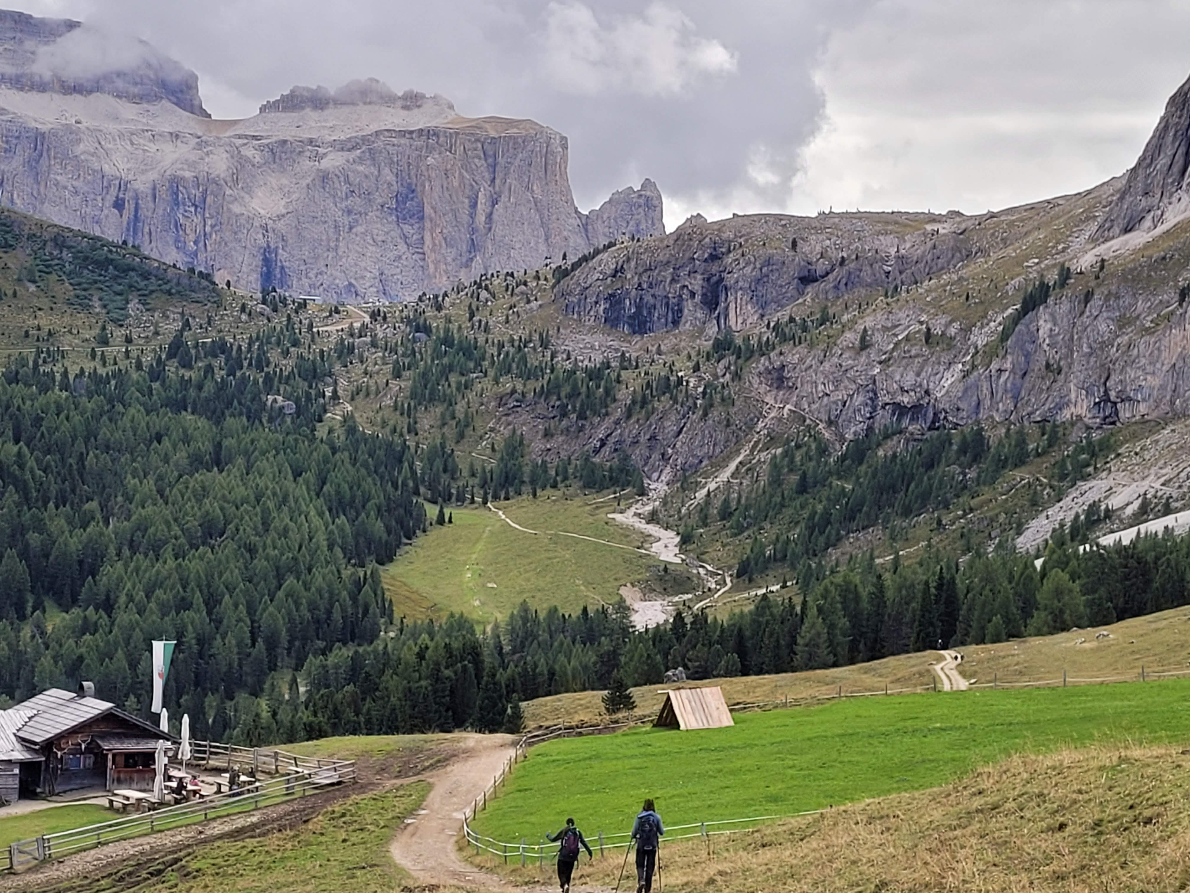 Rifugio Emilio Comici to Mont di Sëura in the Alpe di Siusi. This was a difficult hike for us with a 900 foot descent, beyond what we usually do, but so terribly rewarding in that we did it. We self-congratulated for hours.