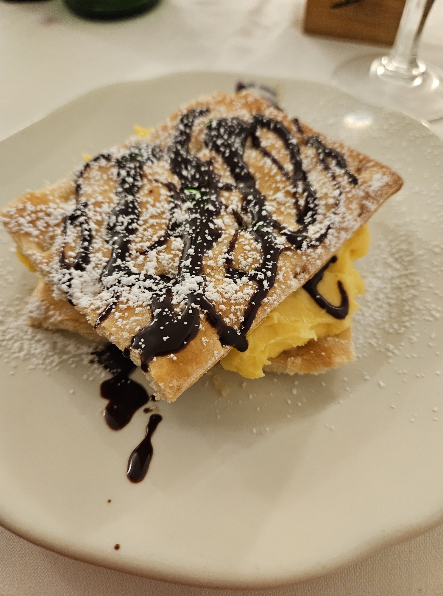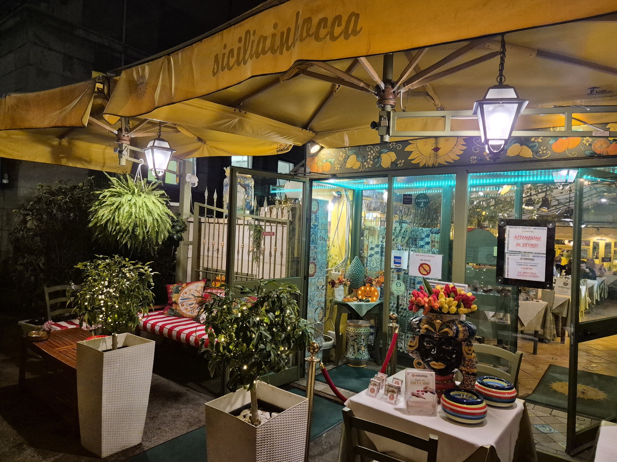 Finding good Sicilian food outside of Sicily is a challenge, but Siciliainbocca did not disappoint. We happened by on a Tuesday, which was couscous night. Couscous ala Pesce is my favorite memory of Sicilian food, and it was memorable. No wonder Elon Musk dines here! (The cabbie told us about Elon’s visit, but we went there anyway.) Donna Fugata wine, an octopus appetizer, grilled calamari for Ric. We left happy and walked back the 2 miles to our hotel as penance for all we consumed.