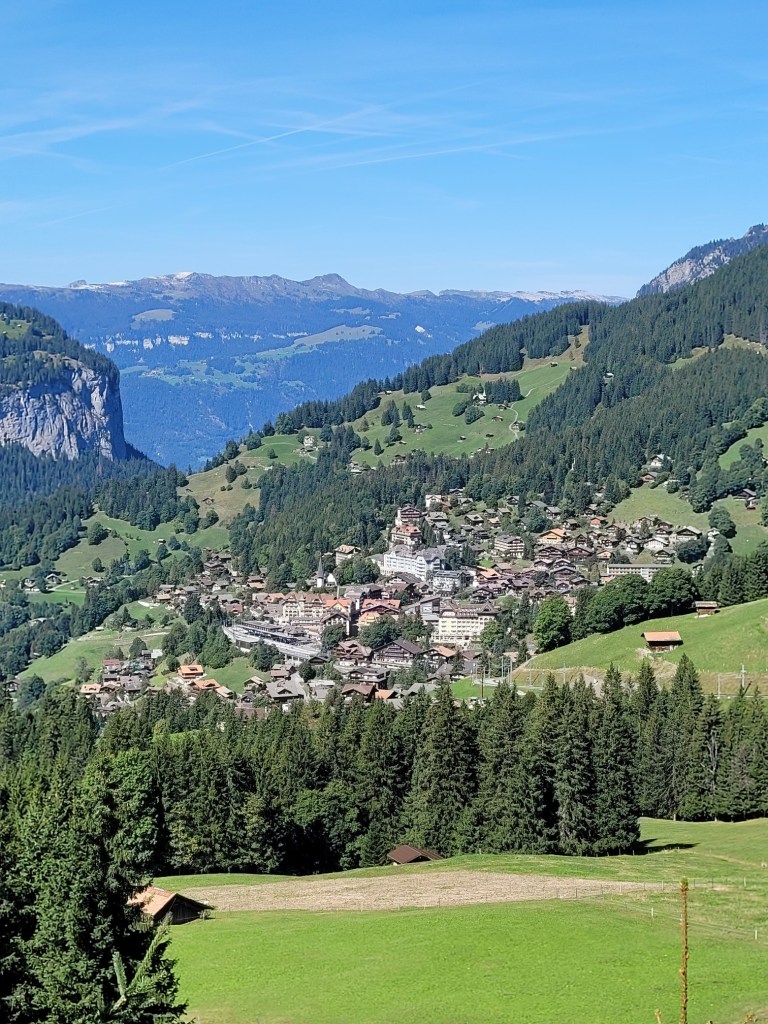 The weather forecast for the Lauterbrunnen area was daunting. Weather.com showed rain for the foreseeable future when we checked it before leaving Wales. But the reality is far better and the weather app MeteoSwiss has been our friend. I have not had to wear a rain hat yet and we even saw peeks of sunlight the past few days with continuing improvement ahead.