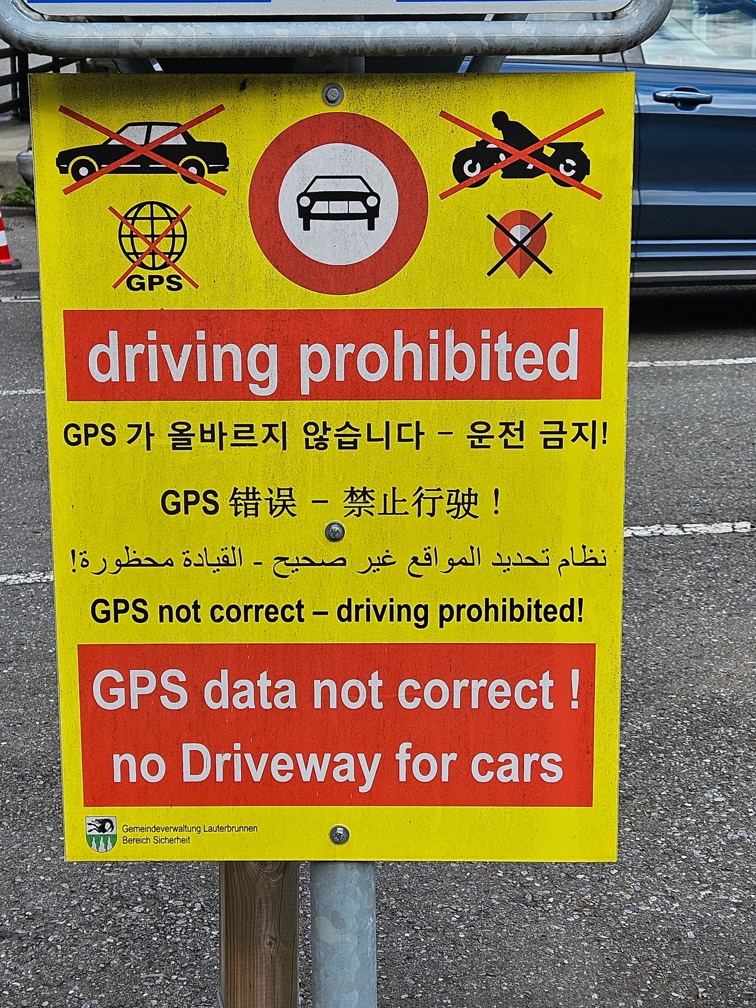 Last year someone tried to drive to Wengen. We know the path: it leads up from Lauterbrunnen and is clearly marked not for driving. Cringe-worthy video here.