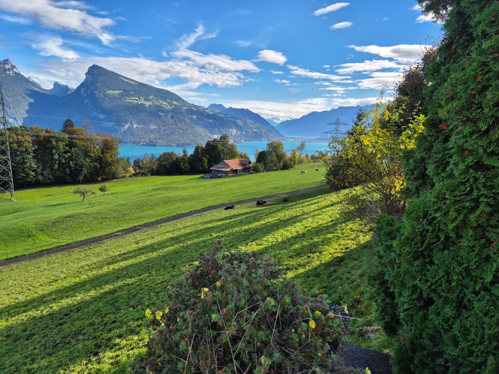 We have spent precious little time on Lake Brienz: we have one lovely lakeside walk in our book, from the tiny village of Iseltwald to Giessbach Falls. We endeavored to find a route on the south shore of the lake, close to Interlaken but away from the tourist hoards. Sad to say, our walk at Ringgenburg while definitely off-the-beaten and offering nice lake views, was so dull we stopped halfway through and caught a bus back.