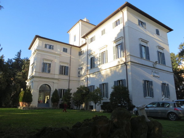 Now back to my story. Wednesday evening I was invited on a special tour with a group from the Embassy. I am a docent for the Embassy and give tours, so I have been immersing myself in the history of the fabulous estate, which dates back to the time of Julius Caesar. When an American hears the word “villa,” we think “big fancy house.” Here a villa is often a park-like estate (Villa Borghese), with several buildings which may be grand palazzi (palaces) or simpler hunting lodges and villas as in the large-house definition. Back in the day (think the Renaissance and the Baroque Period), Villa Ludovisi surrounded and included the site of the U.S. Embassy, the Palazzo Margherita. It comprised many acres and included several palazzi. It had been transformed over the years in many ways, and the property was sub-divided in the 19th century to create the great neighborhood surrounding the Via Veneto.
