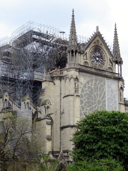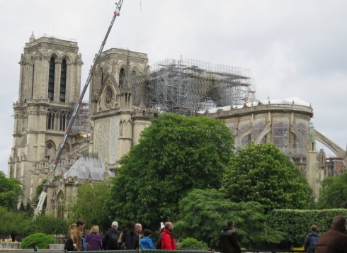 Rain? We walk. It is only a drizzle, like at home. It comes and goes.  Stop in a cafe for espresso and croissant. How Parisian! The Monnaie de Paris was open and uncrowded and pretty interesting, extremely well-done. Ah! Here is the sun, for five minutes. No rain! Lunch at a small place we know (after 6 visits, we have places) across from poor old Notre Dame. Lovely salads and we got to hear the owner’s tale from the “Day of the Fire.”